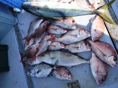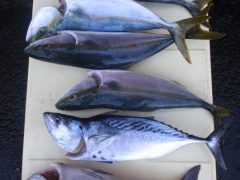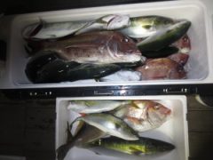 ワラサ75㎝2匹 ハマチ45~50㎝4匹 マダイ40~46㎝5匹 本カツオ1匹 …