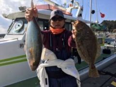 ヒラメ釣りに出船 釣果 ヒラメ オオモンハタ ハマチ ワラサ