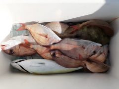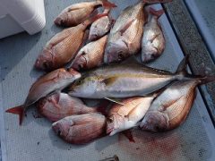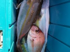 マダイ60~28cm 16~12匹・シオ50~40cm 3匹・ハマチ・ハタマス