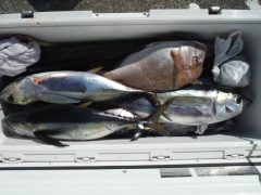 ヒラメ 47~35cm 7~4匹・ハマチ 60~43cm・ハタ など