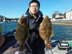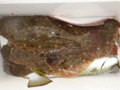 釣果 ヒラメ竿頭10匹で船内45匹「37~60センチ」