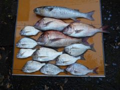マダイ 58~40cm・ヘダイ 30~20cm 9枚・ボラ 72cm