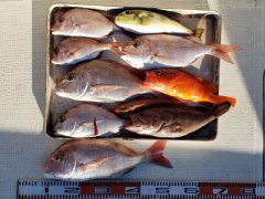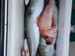 MAFT様 シオ45cm、ツバス44cm、オオモンハタ36cm頭に5匹、アカハ…
