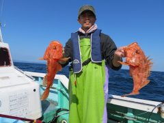 比嘉様お二人 エギでアオリイカ2杯、アカハタ32cm頭に11匹、アコウ30cm…