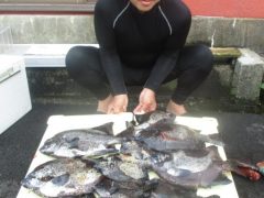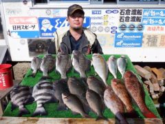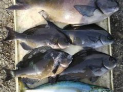 磯釣りで原田さんがチヌ48cm、シオ、イシダイ、グレをゲット