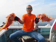 最初は良型のアオハタがダブルヒット