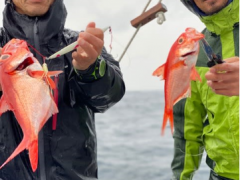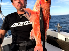 船外機ボートで若林さんがシオ、アカハタ、カサゴ、メイチをゲット