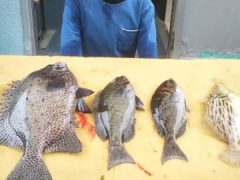 磯釣りで中川さんがチヌ、グレ、シマアジ、アイゴ、アカハタをゲット