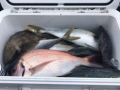 グレ 40㎝ 1匹 尾長グレ 39~30㎝ 7匹 ツバス 1匹