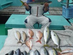 船外機船釣果 アジ<20cm22尾 マダイ<38cm2尾 他