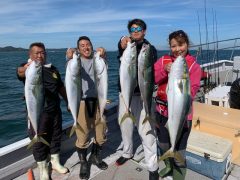 堀田さんらが、ワラサ75㎝1匹マダイ40~50㎝10匹 ハマチ40㎝1匹