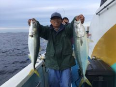 エレキ船釣果 ワラサ<68cm2尾 ハマチ<43cm6尾 アジ18cm
