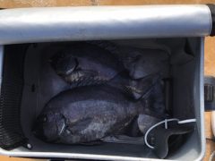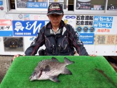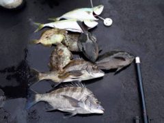 船外機ボートで佐野さんがチヌ、マダイ、イトヨリをゲット。