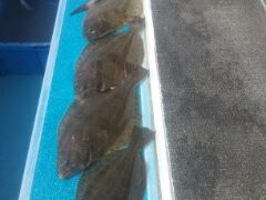 ヒラメ 39cm~55cm。 船中0~4匹。