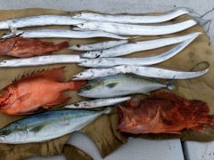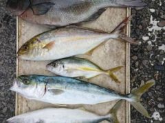 タイ(26~58cm)14~25匹 ワラサ(66cm)1匹 ツバス0~6匹 オモ…