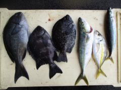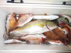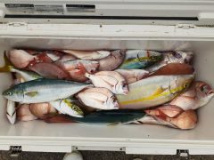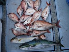 タイ(23~38cm)14~25匹 カンパチ(45~50cm)1~2匹 ツバス・…