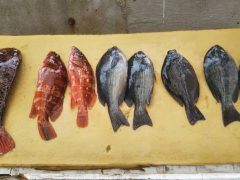 イシダイの40-63センチを各1匹。イシガキの42センチを1匹
