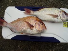 平松カセ釣果 大阪堺市 兵頭弘士さん マダイ 42、50cmー2枚 ボラ2本
