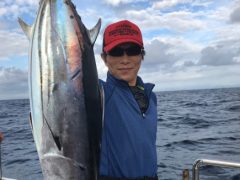 船外機ボートで川上さんがアオリイカ、アカハタ、ツバスをゲット。