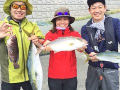 カセ釣りで黒川さんがアジ大漁。