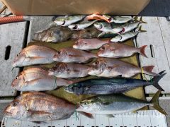ジギング釣果 ワラサ 1本 サワラ 1本 真鯛 8枚 ツバスぼちぼち まと…
