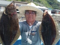 ヒラメ釣り釣果 ヒラメ船内41匹「37~50センチ」 ブリ、ワラサも各一匹、マハ…