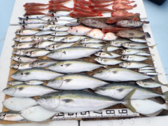 ブリ、ワラサ、大ハマチ、大アジ、レンコダイ、マダイ、ホウボウ、ウッカリカサゴ、オ…