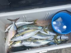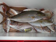 泳がせ釣果 50〜60㌢良型ヒラメ3枚 ワラサ、ハマチ1本、マハタ2匹