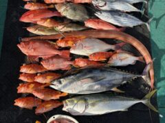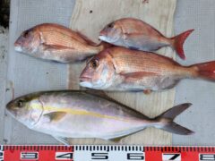 昼便のウタセマダイは初めは鯛を釣って夕方カンパチ狙い。