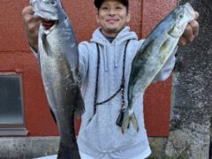 磯釣果 ヒラスズキ60センチ ツバス50センチ