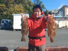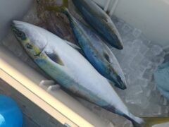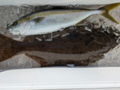 泳がせ釣果 青物の活性があり、ヒラメ、マダイもあり。 皆さんお土産ありました。